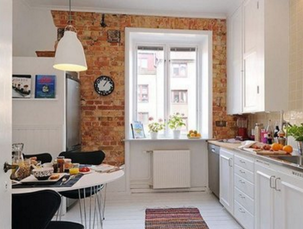 適合小房子,因為小空間需要高效的空間,家電、櫥櫃和操作臺都定位在墻的一面。
