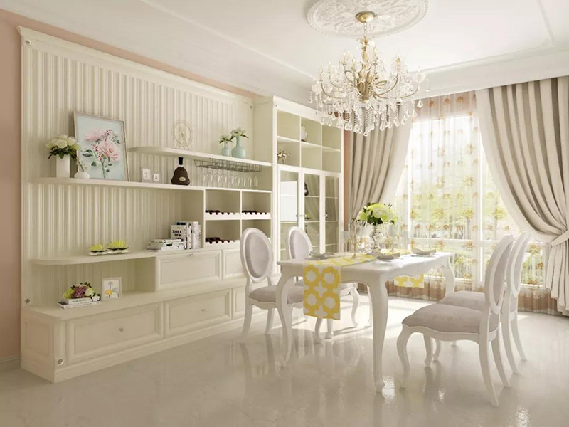 若想要使客廳和餐廳的功能稍微獨立,用戶可以在客餐廳中間進行隔斷。采用隔斷的形式是多樣的,可以運用裝飾櫃、矮櫃、屏風等進行隔斷。