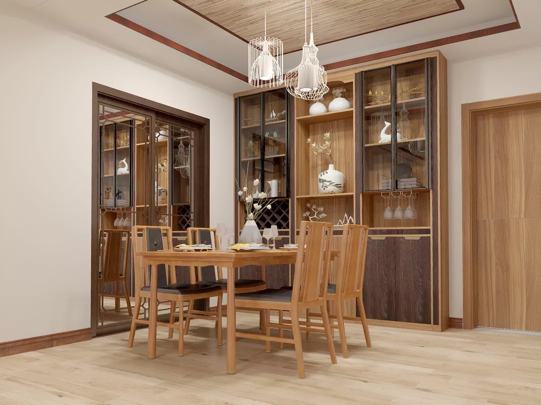裝飾搭配:空間裝飾采用簡潔硬朗的直線條,不僅反映出現代人追求簡單生活的居住要求,更迎合了中式家具追求內斂、質樸的設計風格
