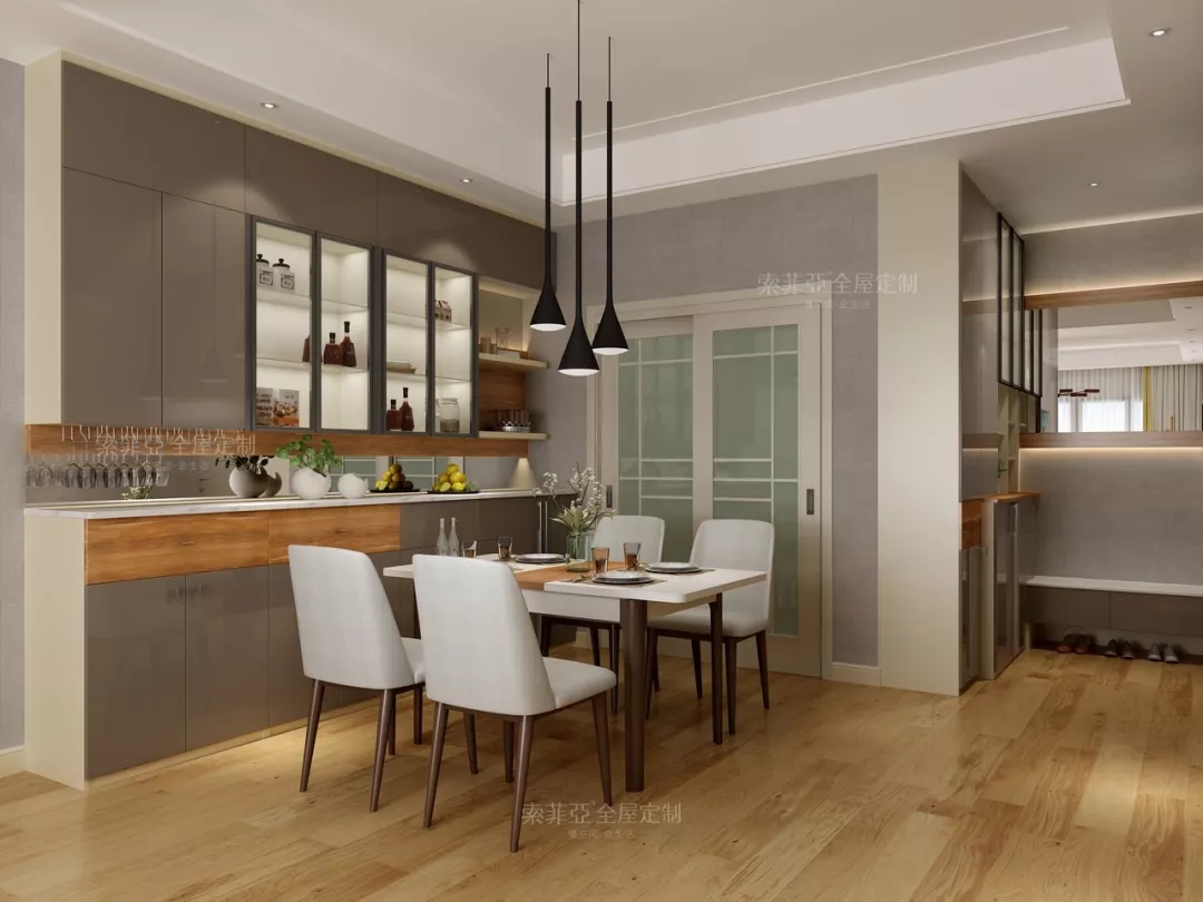現代樓盤,很多都是“進門即是餐廳”的戶型。一個兼顧顏值和實用功能的餐邊櫃,能大大提升家的格調和家人的進餐心情。