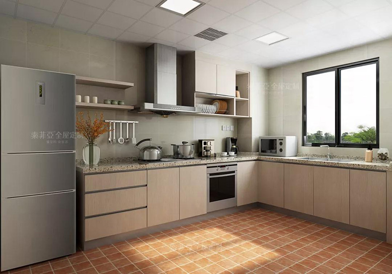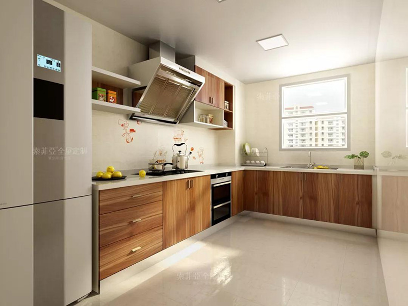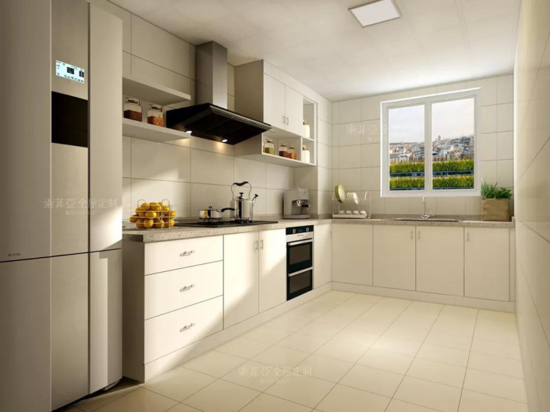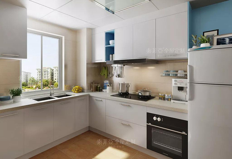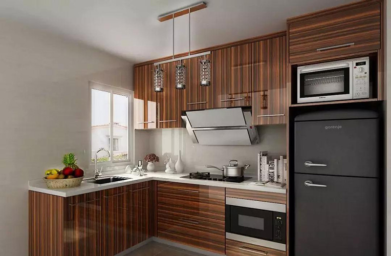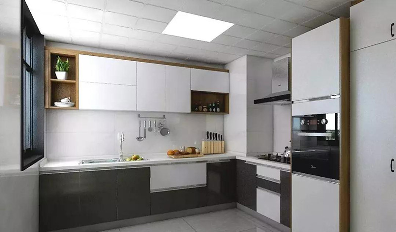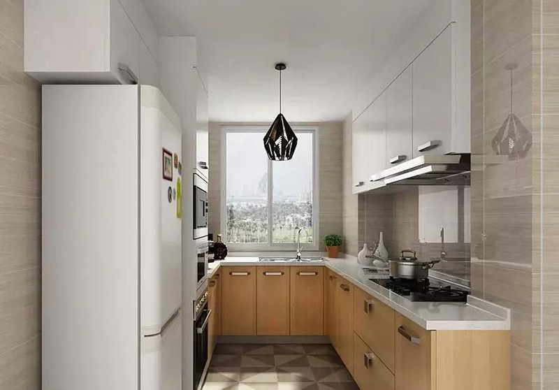 L型廚房適合絕大多數的戶型,它比II型節省空間,又比I型更實用,普通大小的廚房布局選擇L型準沒錯。