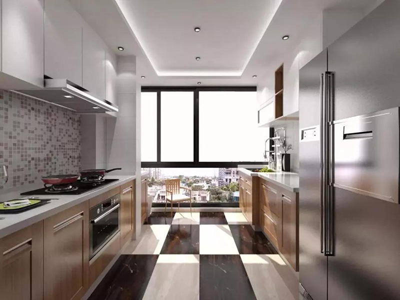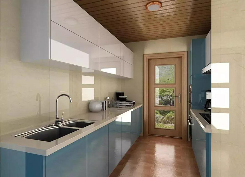 II型比簡單的I型多了很多操作空間,功能區可以緊貼著兩側墻壁布置,中間留出過道,將廚房的每一寸空間都利用起來。