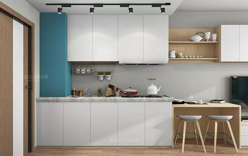 I型廚房適合沒有獨立的空間或廚房通常占據一個過道的小戶型(比如單身公寓),是最節省空間的廚房類型。