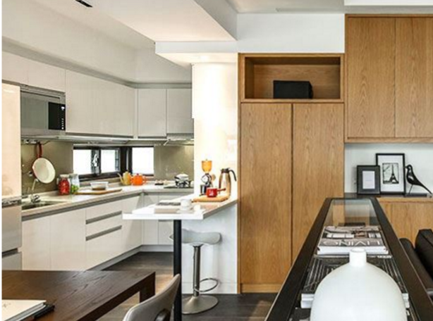 開放式的廚房會讓客廳、餐廳、廚房在一起顯得空間大,但是不適合天天居家過日子的家庭使用,我們中國人菜系基本上是煎炒離不開油煙,所以除非你家廚房基本用來擺放,否者還是選擇中式廚房來設計吧。