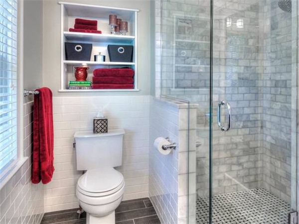 洗手間大多是用瓷磚來做墻面和地面裝飾,在選購墻磚時需要注意耐水性,以及釉面質量,墻磚在一定程度上也起到防水效果。地磚顏色建議深色系,耐污染,並保證磚的質量。