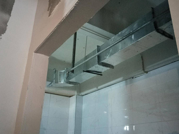 1、我們需要檢查油煙管道口是否有吊頂下移從而在上部所預留的空間和位置的條件。在預埋排煙管時注意封閉住煙道口的縫隙,並保證其牢固不脫落。