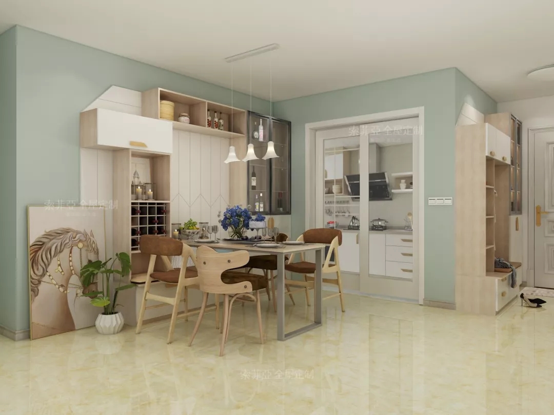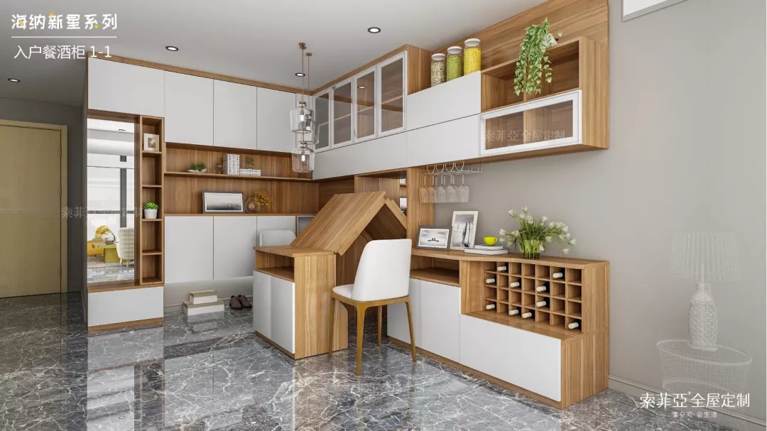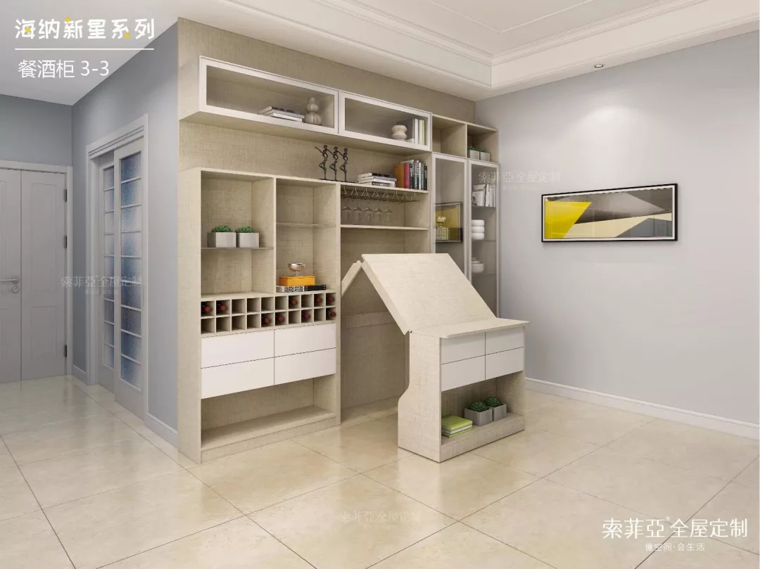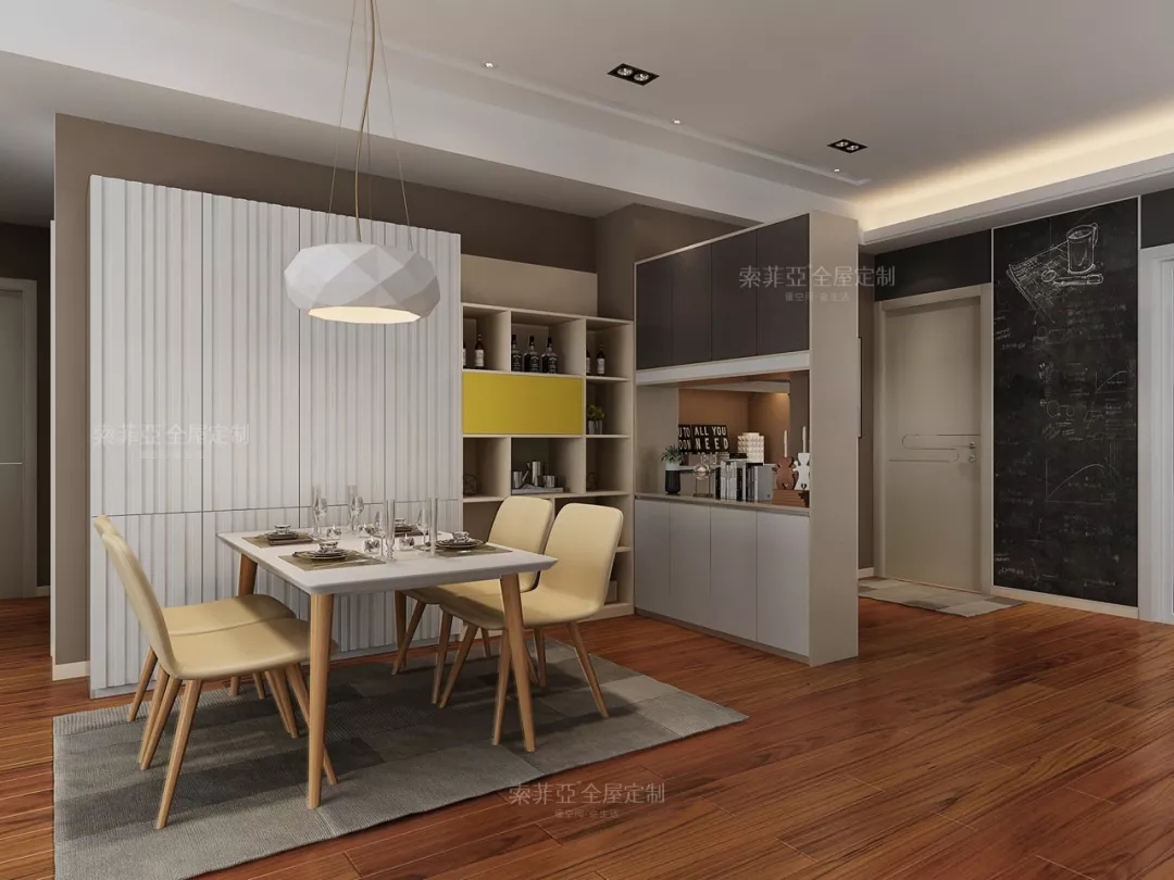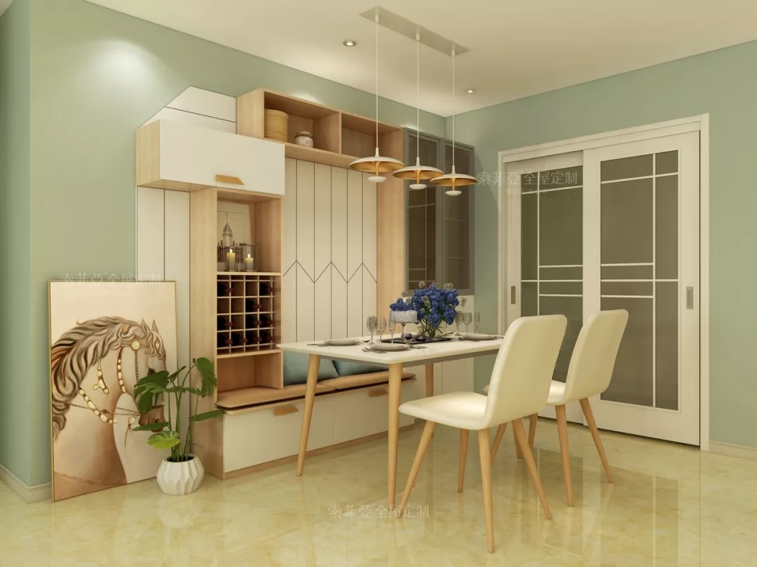 餐廳空間逼仄的情況下還可以把餐桌藏在餐酒櫃里,非飯點時間輕松解放餐廳空間。