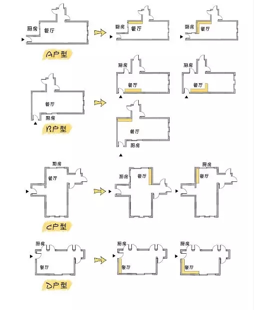 中小面積住宅常見的餐邊櫃布局類型有以下幾種: