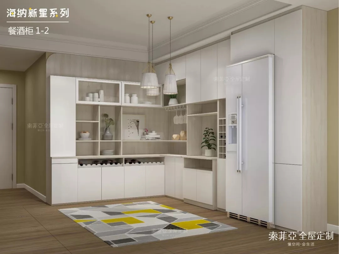 L型餐酒櫃收納空間大,還能裝飾家里的墻角空間,看起來非常大氣。