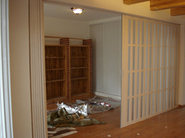5、 折疊門按不同開啟方式分側掛式折疊門和推拉式折疊門兩種,如果是推拉式折疊門,一定要將其軌道做重點檢查對象,確認軌道的長度是否正確,如過長則用鋸子鋸掉長出的部分。注意不要讓鋸屑進入軌道里。
