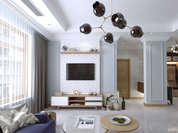 在確定電視墻尺寸前,先根據客廳大小、視野遠近選擇適合的電視機尺寸,再去設定電視墻的大小范圍。空間范圍小的話建議選擇掛式電視,空間范圍大的話可選擇放置在電視櫃上。同時建議可以先讓沙發入室,再根據沙發的高低遠近調整電視的位置。