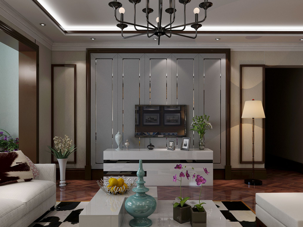 如今很多家庭都會選擇入墻式的電視墻來裝潢,讓整個墻面變得簡潔而平整。入墻式背景墻作為漂亮的電視墻之一,它最簡單的方式做櫃子,建議利用帶櫃門的櫃子進行遮擋,電視放置中間凹陷位置就可以。