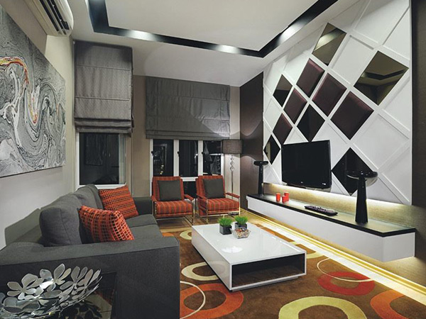 電視背景墻的設計可以適當搭配一些小裝飾品,為其增添亮眼。我們可以放一些相框在電視櫃的裝飾格上,還有將一些雕塑品擺放在電視櫃上。如果我們想要營造客廳浪漫的氣氛,我們可以將一些小燈飾設計在電視背景墻上。