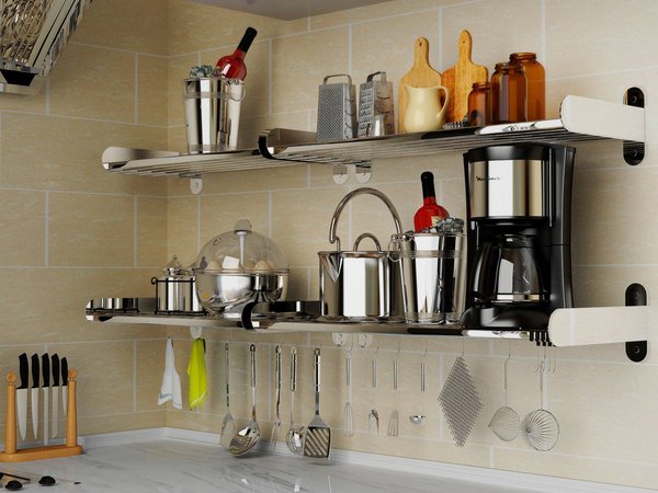便適用性:安裝置物架的時候一定要安裝廚房的整個布局和我們日常生活的需求去安裝,常用的,炒菜隨手就要用到的安裝的位置一定是里我們炒菜地方不遠的地方,換句話水就是我們伸手就能夠夠著的地兒,不常用的我們可以安裝或是放置在廚房的空缺部分。