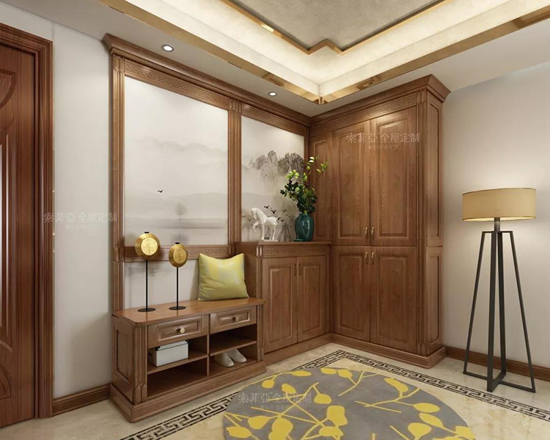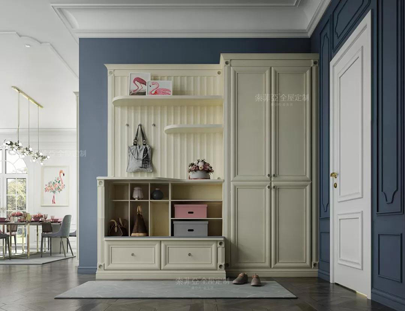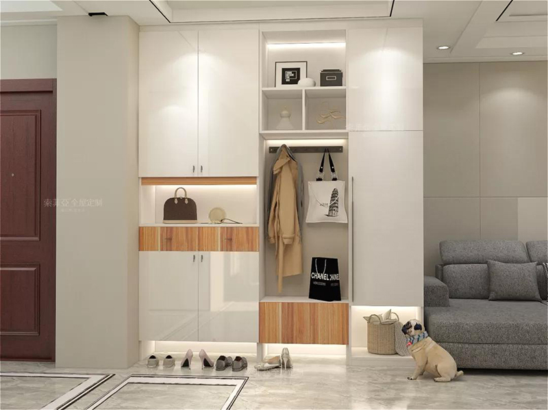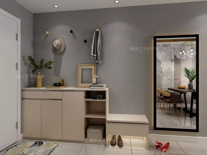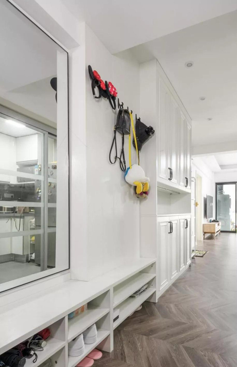 比如玄關位置,一個家庭除了需要換鞋放鞋,還要放鑰匙包包快遞,最好還要有鏡子,方便出門前整理著裝,再來增加個換鞋凳、外套掛衣櫃就更完美了。