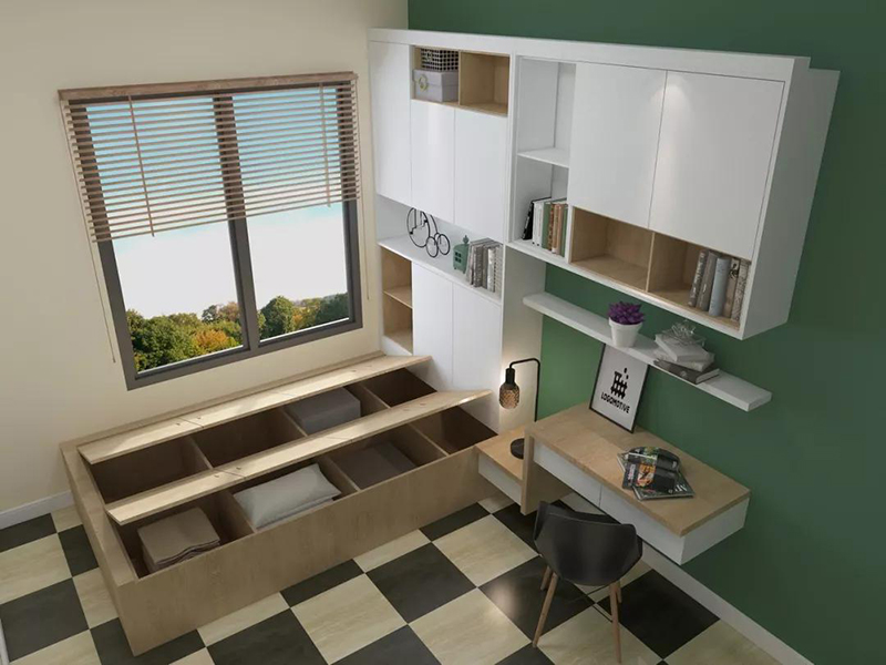 除了衣櫃、家里的電視櫃、餐邊櫃和榻榻米也盡量選擇做到頂,相信我,大掃除再也不用踩凳子清理頂灰,拿雞毛撣子扇一下櫃格就完事了。