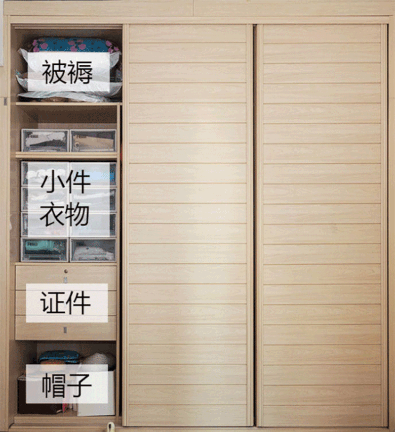 對于衣櫃內部收納,記住兩個要點,按照換季和身高收納。換季衣物就不用多說了,來說說身高,根據身高決定物品的擺放高度,因為高度合適,方便拿取,大家才會漸漸養成哪里拿放哪兒去的習慣。
