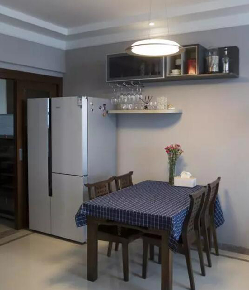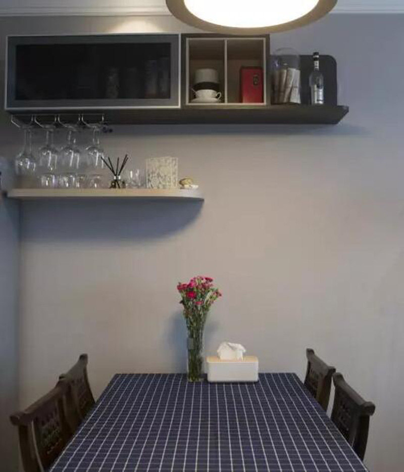 不僅完美裝飾了餐廳墻面,男主人的餐酒,女主人的餐廚用品,寶寶的奶粉奶瓶,一家人的日常用品等等,全都可以收納其中。