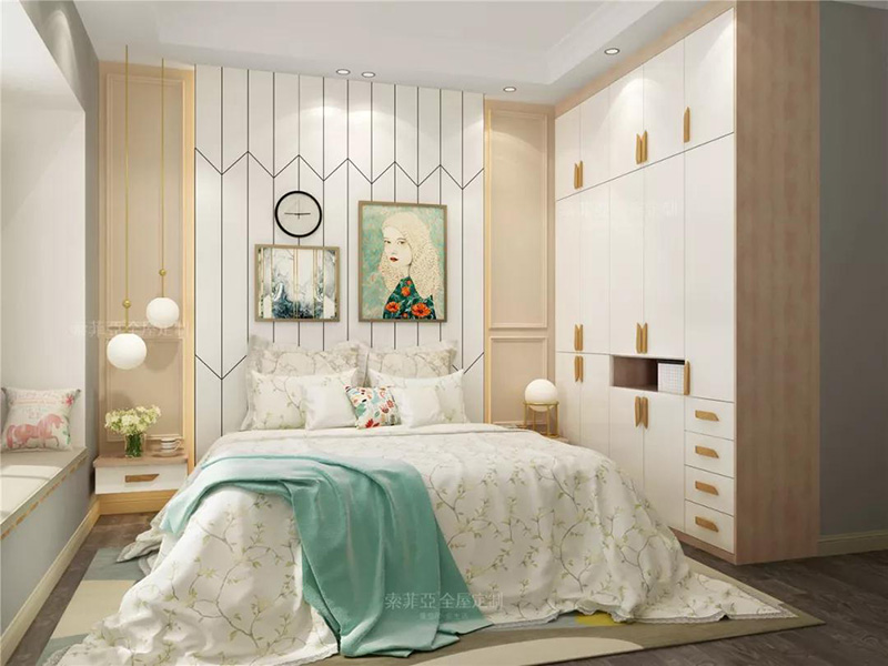 客製化的收納背景墻,讓空間更有整體性,也讓利用率不高的床頭背景墻變得大有可為。