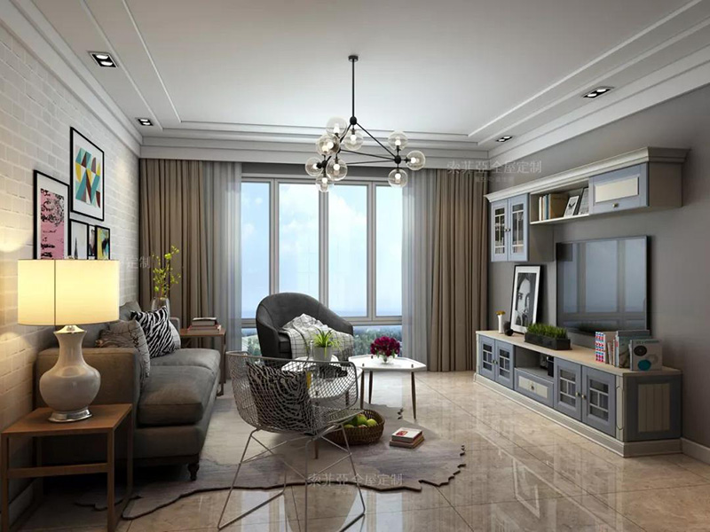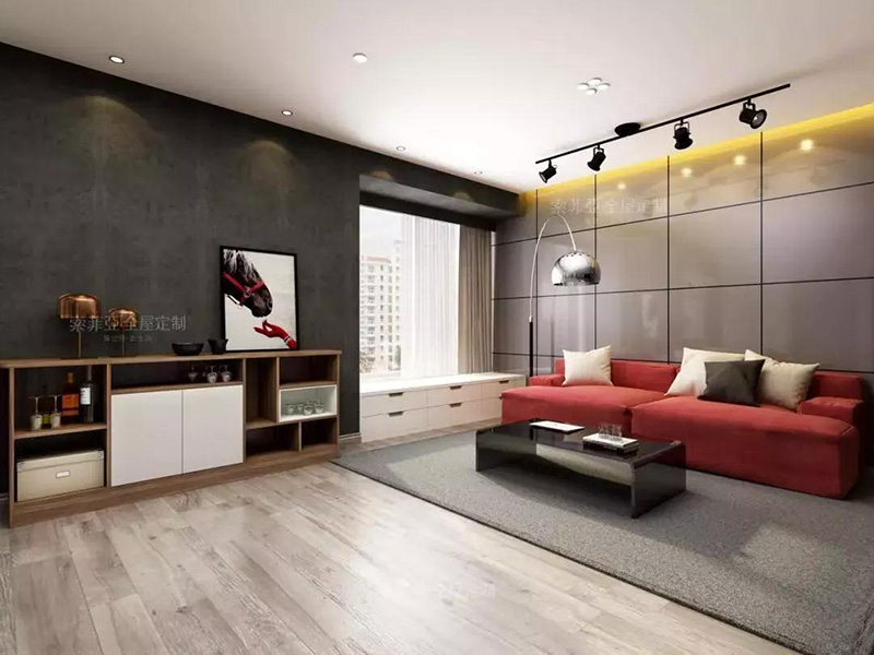 這種格局是直接用裝飾品取代了電視,多用于單身或兩口之家。像經典客戶@venasa家的客廳便是如此。