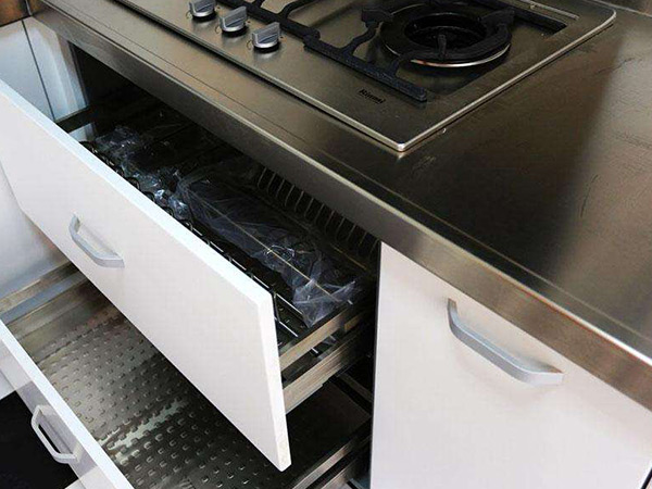 4、不銹鋼臺面不僅不怕高溫,同時還具有不開裂、不滲水等優勢。不銹料是防火、防高溫的材料,完全避免了使用上的不安全性,而且有效延長了其使用壽命。