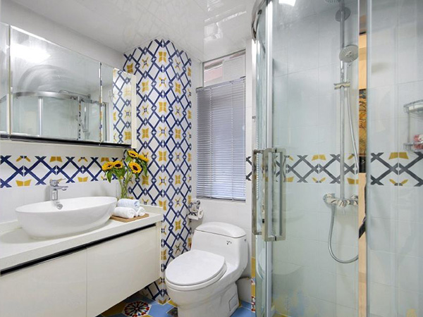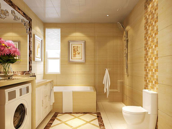 洗手間大多是用瓷磚來做墻面和地面裝飾,在選購墻磚時需要注意耐水性,以及釉面質量,墻磚在一定程度上也起到防水效果。地磚顏色建議深色系,耐污染,並保證磚的質量。