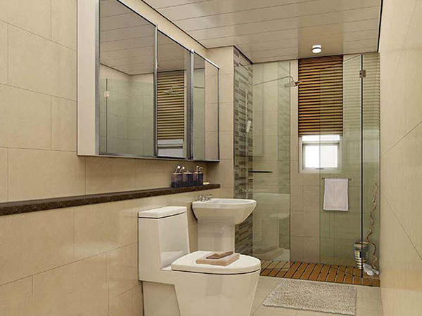 洗手間吊頂材質一般選擇集成鋁扣板,既耐用,又防水,並且可以采用分模塊的方式合理的設置採光、換氣、浴霸等的位置。