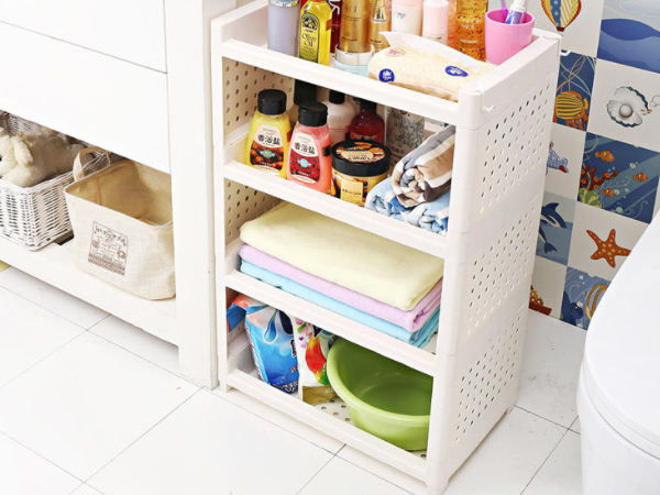 2、塑料衛生間儲物架:塑料材質的衛生間儲物架輕巧,具有簡約的美感,安裝起來也方便快捷,另外不損墻面,也很現代時尚。不過塑料衛生間儲物架如果質量不是太好的話它的承重力不夠強大,而且使用壽命也不長。