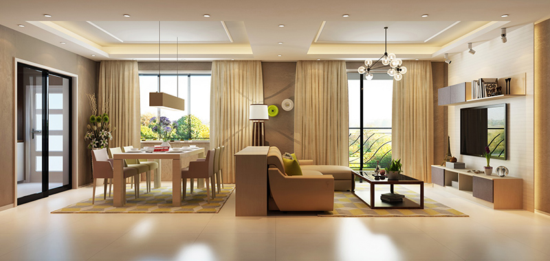 客廳餐廳吊頂時,顏色要一致,而且燈具裝飾物的選擇也應盡量相同。這樣才會有整體的感覺。