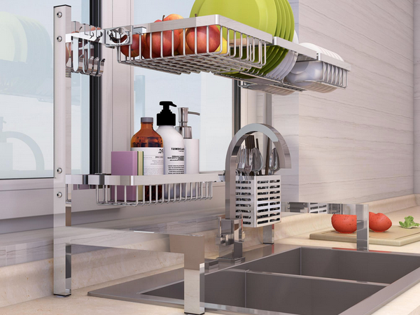 由不銹鋼制成的廚房收納架置物架有著很好的防水性和耐磨性,在使用過程中,不僅具有很好的儲物收納功能,而且還有效的減輕了使用者的清理負擔。但是這種材質的置物架連接處很容易生銹,不適合在過于潮濕的環境中使用。