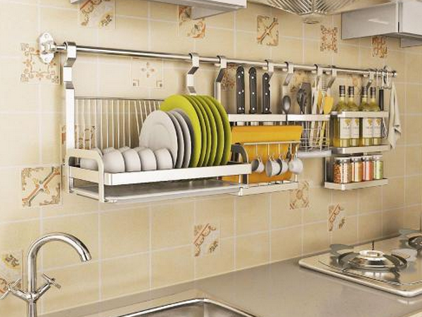 在安置廚房置物架的時候我們要對廚房用具分類放好,廚房置物架在市場上是多種多樣的,像什麼刀具架、放置調料的廚房置物架、瀝水架(重要是放置盤子的)等等在,按照他們的不同類別安裝在一個合理的位置。瀝水架可以安裝在洗碗槽的旁邊,刀具架可以安裝在灶臺的角落上,調料廚房置物架就是安裝在離我們炒菜比較近的地方。