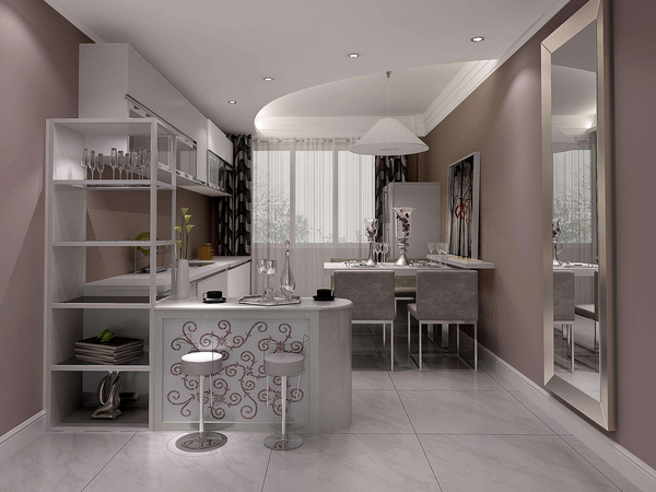 1、貼墻式吧臺就是利用我們的空間,則可以放上一些隔板或者設計一個櫃子來置放物品。空間的利用也是很完美的。這種設計方法的優點是占地面積少,因此所以不管是餐廳、書房還是臥室,都可以設計,所以比較適合面積較小的戶型家庭。