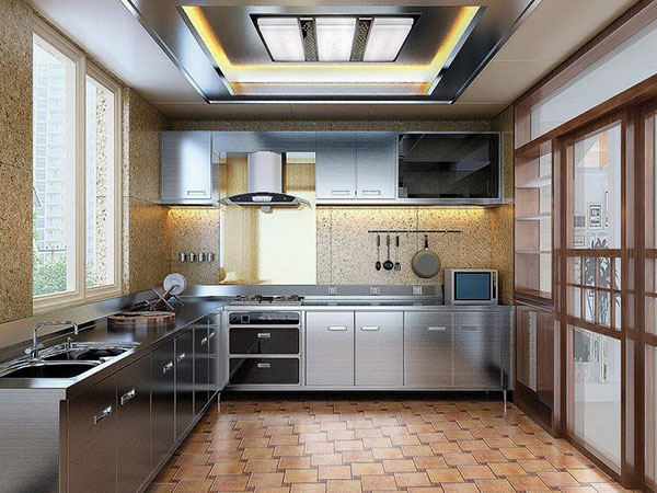 4、不銹鋼櫥櫃臺面不會掉色也不容易顯舊。因為不銹鋼櫥櫃臺面是它原來的顏色,所以不存在褪色的說法,使用時間再長也會顯現得亮麗如新。