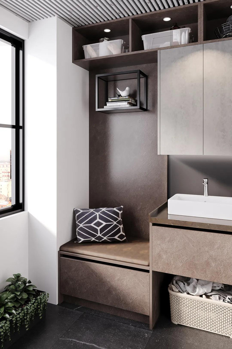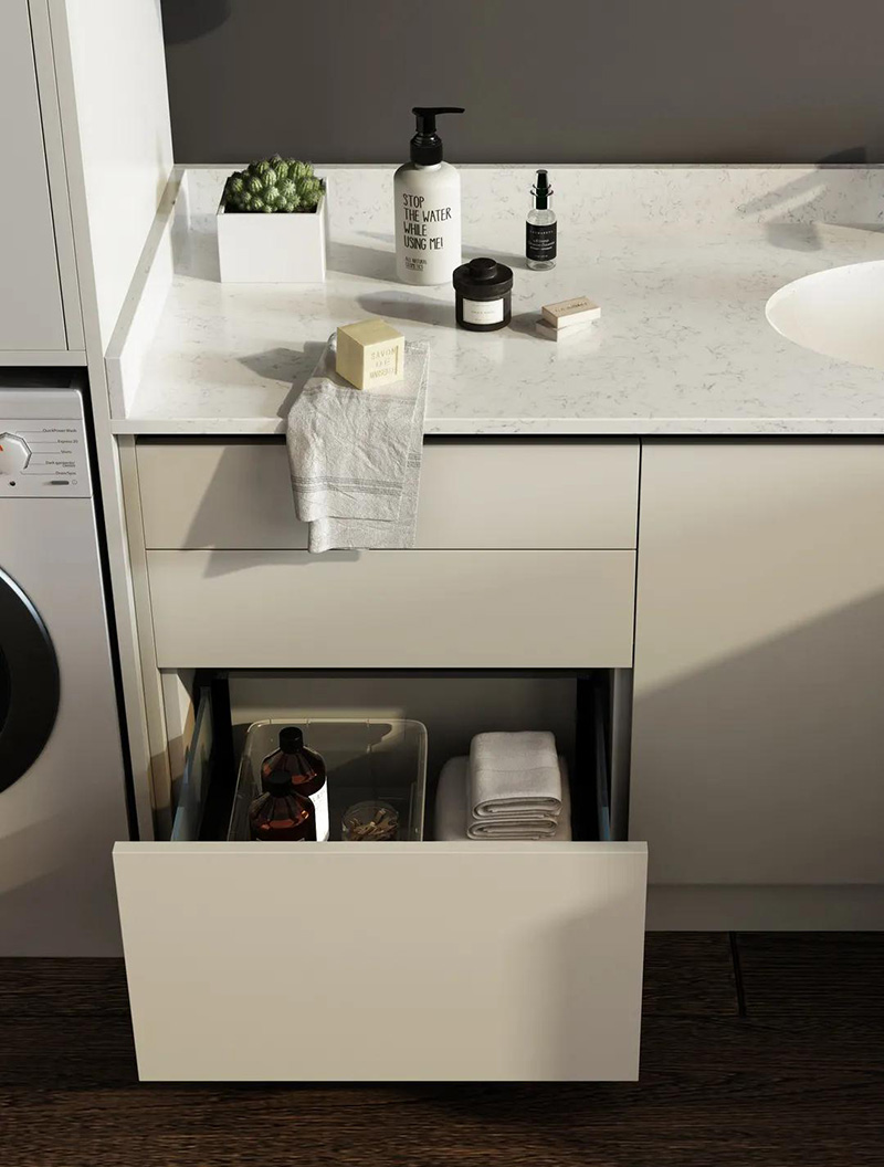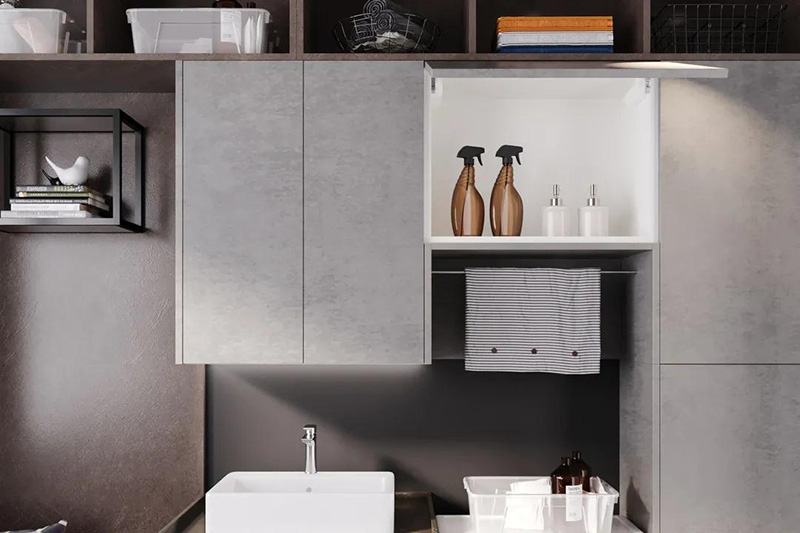 設計陽臺櫃,就能將洗滌劑等各種物品收納其中,外觀上整潔無余,打開櫃子應有盡有,滿足你對理想陽臺的向往。