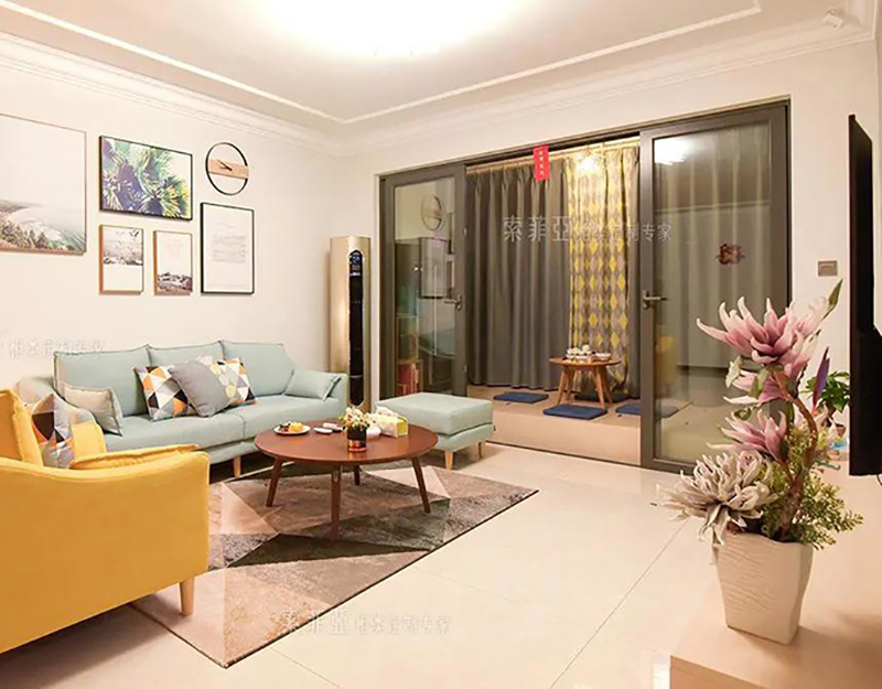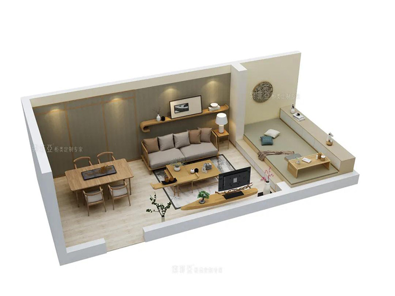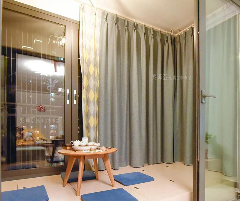 沿著陽臺和客廳間的門洞打造榻榻米,空間更有整體感和設計感。