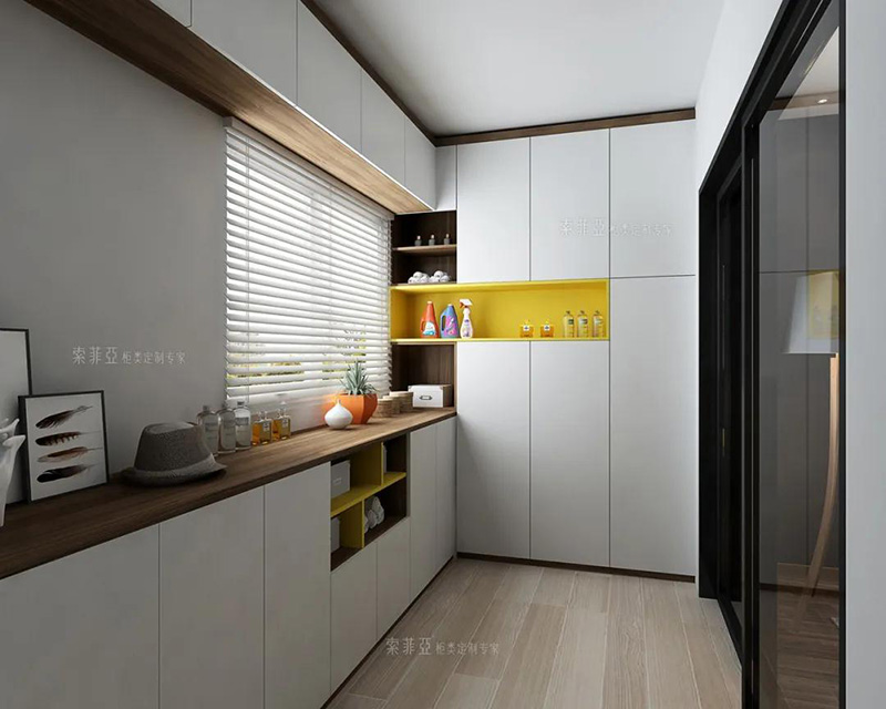 甚至還能把陽臺打造成獨立的家務區,洗衣、干衣、疊衣、收納,一氣呵成,大大緩解了整個家的收納壓力。