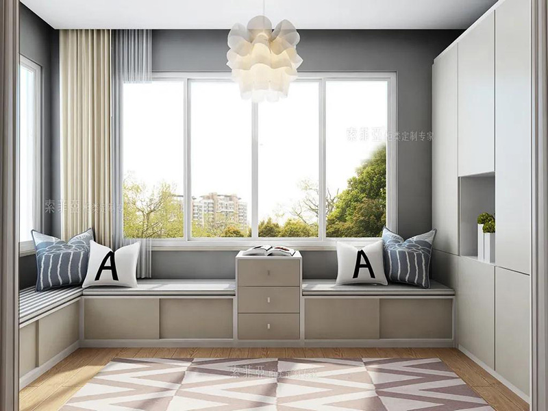 如果不想大費周章去打造榻榻米,那么沿窗放一排座位櫃,簡簡單單卻也很實用,還能提升家居趣味。