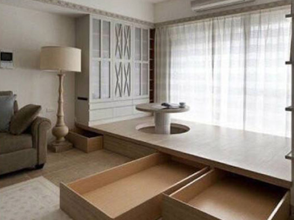 由于這個區域它的活動頻率比較高,所以說它的承重性也是要比床多一分,那么在設計的時候一定不能去破壞掉陽臺本身的承重體,另外在選材方面也是要從這方面來考慮,比如說像承重板材最好選用密度高、年份好的實木,注意選材的時候要選用經過防潮防蟲防裂處理的板材。