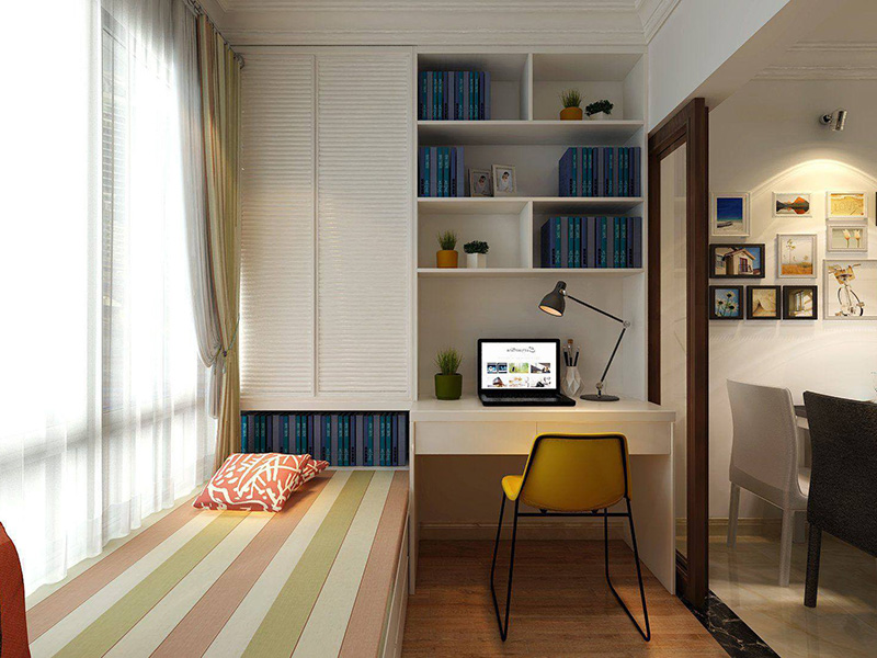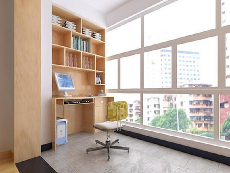 裝潢:陽臺做書房,如果陽臺尺寸是狹長的可以在一端放置書桌,做個學習區,剩下的位置做個休息閱讀區。