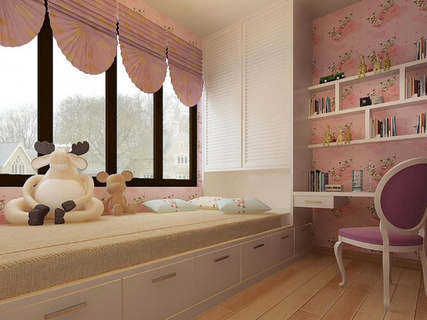 有的小陽臺真的是迷你小的,沒長度也沒寬度,那就把它設計成一個榻榻米式的外飄窗吧,榻榻米下面還可以打成矮櫃,用于日常收納。
