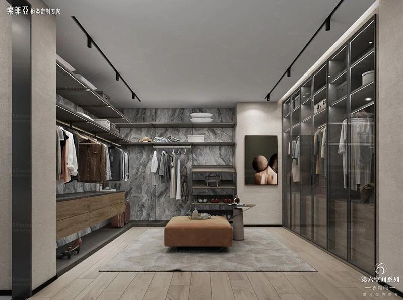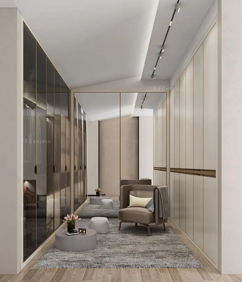 灰色無疑是和輕奢風最搭的配色,在打造衣帽間的時候也不例外。