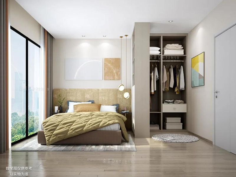 當然,假如沒有獨立空間,在臥室打造出L型衣帽間也能很好地兼顧實用性和美觀度,對小空間十分友好。