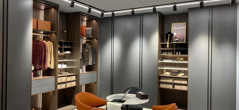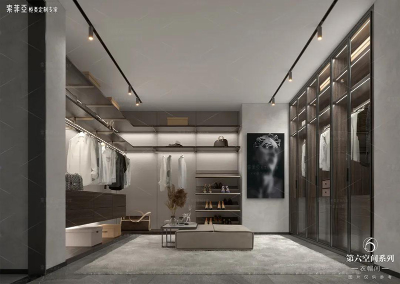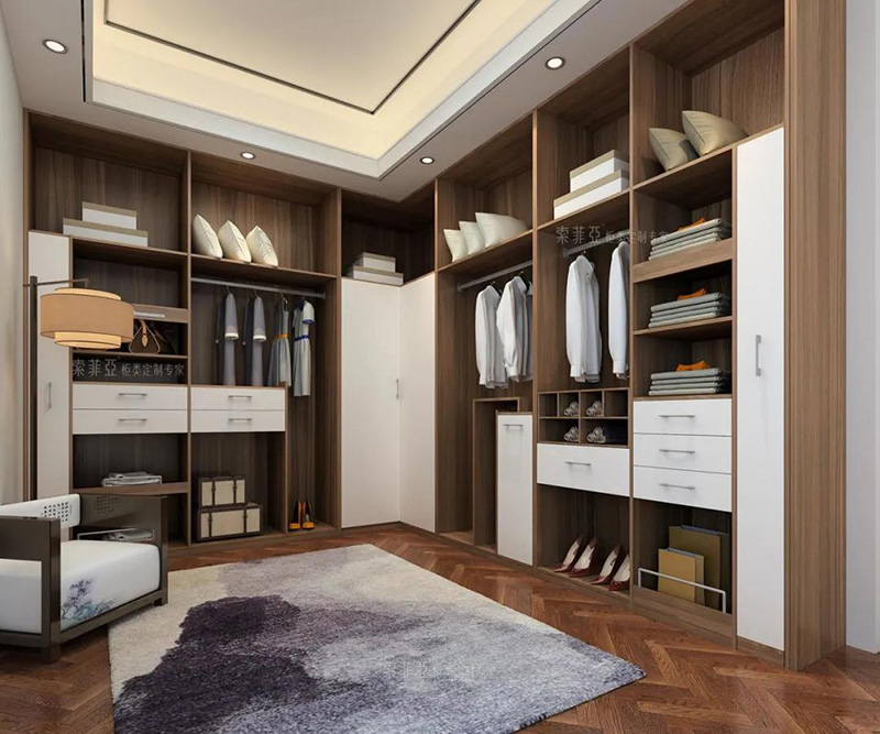 L型布局的衣帽間比較適用于獨立衣帽間或是空間充足戶型方正的臥室空間。