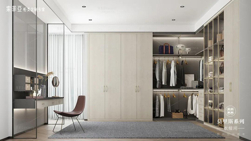 甚至還能靈活搭配梳妝臺,打造出功能更為齊全也更加實用的衣帽梳化間!