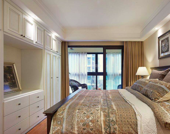 其實我們的床頭是比較占用空間的,如果臥室的空間不夠大,床頭又比較大的時候,我們的臥室就會變得很擁擠。這種情況下把衣櫃和床頭相結合,把床頭嵌入到衣櫃里,就是一個不錯的選擇了,這樣能夠把空間利用率發揮到最高。