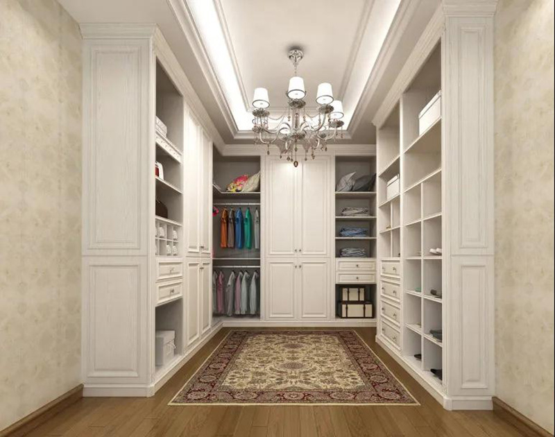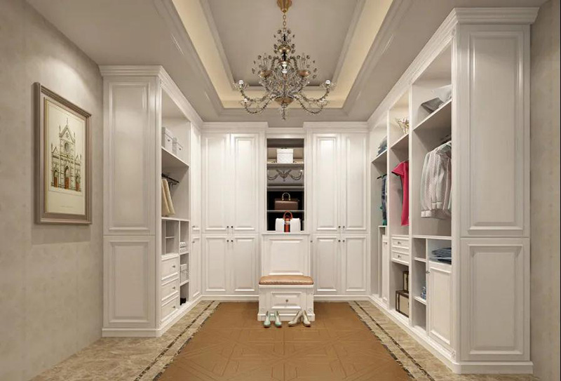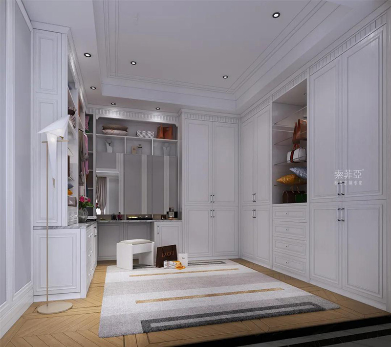L型布局的衣帽間可以說完全不挑空間戶型。既能裝在擁有落地窗衣帽間的“土豪”家庭;