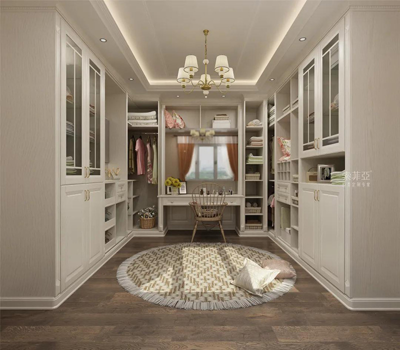 帶窗的獨立衣帽間,建議靠窗位置做成梳妝臺(平時化妝的女生都知道,光線直接影響化妝效果,別問我怎麼知道的)。