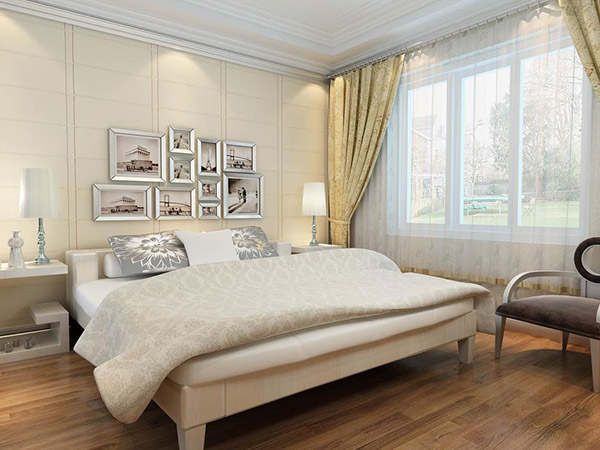 在別墅臥室裝潢設計時,一定要確保臥室環境安靜。消除噪音是別墅臥室設計考慮的重要內容。噪聲不僅能擾亂睡眠對于兒童來說更危害他們的生長發育。噪聲源主要來自室外,室內也有種種聲音的干擾。因此裝潢時可考慮選擇吸聲材料做臥室裝潢,如地毯、窗簾、粗面壁紙等,盡量避免使用玻璃、大理石、刮瓷墻面等硬質裝潢材料。