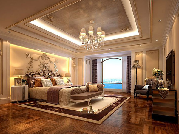 豪華臥室的一般裝飾在顏色選擇上比較重,可以體現金色的厚重感。像淺色的色調只會使房間的風格看起來凌亂。豪華臥室通常有金屬裝飾。這種主要是為了增添點睛之筆。微弱的金屬光澤不會刺激人的眼睛,也不會給人一種壓迫感。其他黑白裝飾會讓人感覺明亮的眼睛,墻上的曲線可以給人一種空間感。
