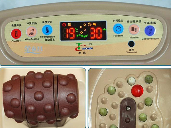 3、使您在熱浪浴足中分離足底按摩、超長波理療,透過腳底的全息反射區,使人體經絡通暢、全身排汗、帶動氣血循環,並配以氣波增氧、臭氧殺菌。泰昌足浴盆產品具有彩屏雙顯現,沖浪加熱、振動按摩、超長波理療、氣波增氧、臭氧殺菌、高頻磁石、鉻鋼玉磨石、自然玉石穴位按摩、溫度設定、時間設定,自動排水,帶鎖萬向輪等多種功用。